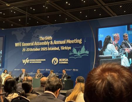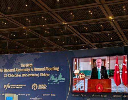 The 64th World Federation of Exchanges (WFE) General Assembly and Annual Meeting, hosted by Borsa İstanbul, took place on 21-23 October in Istanbul. The invitation-only event brought together CEOs and representatives from member exchanges worldwide, along with regulatory authorities and leading experts from academia and the media. The annual event serves as a global forum for in-depth discussions on key issues shaping the exchange industry, including market structure, technology, regulation and sustainability.
